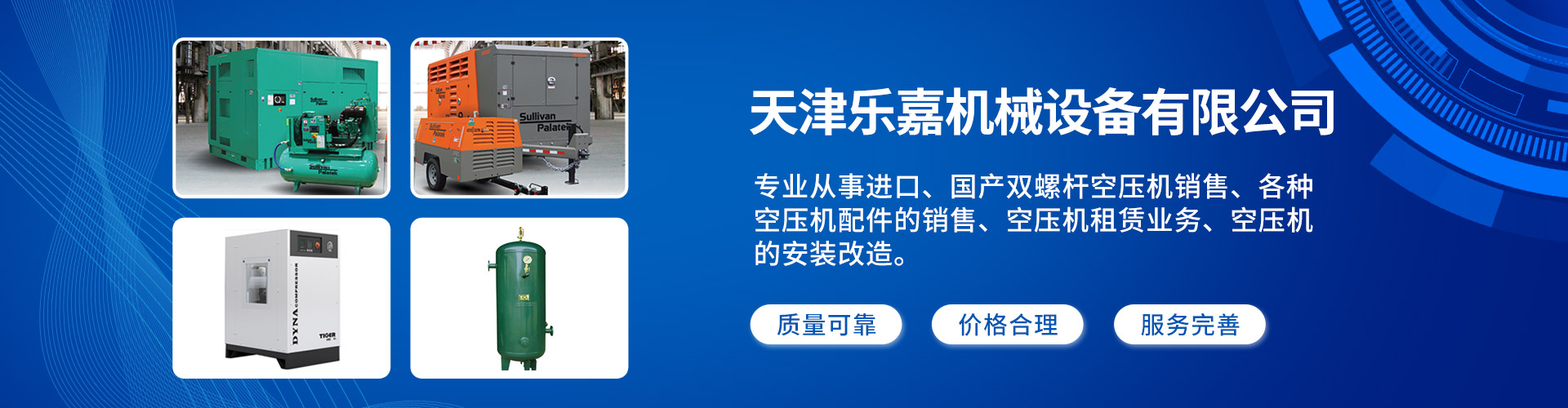 天津樂(lè)嘉機(jī)械設(shè)備有限公司,成立于2011年,公司專(zhuān)業(yè)從事進(jìn)口、國(guó)產(chǎn)雙螺桿空壓機(jī)銷(xiāo)售;各種空壓機(jī)配件的銷(xiāo)售;儲(chǔ)氣罐銷(xiāo)售:冷凍式干燥機(jī)銷(xiāo)售:車(chē)間管路設(shè)計(jì)與施工:空壓站的設(shè)計(jì)施工:并且配備專(zhuān)業(yè)技術(shù)人員進(jìn)行機(jī)器的維修、維護(hù)與保養(yǎng)等業(yè)務(wù);我公司還提供空壓機(jī)租賃業(yè)務(wù);空壓機(jī)的安裝改造業(yè)務(wù)等。